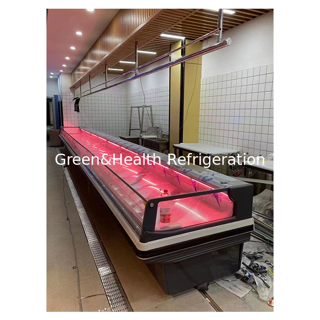 1Die europäischen Fleischvitrinen bewahren mit Hilfe von Doppelkreislaufkühlsystemen für eine gleichmäßige Luftzirkulation präzise Bedingungen von -5°C bis 8°C.